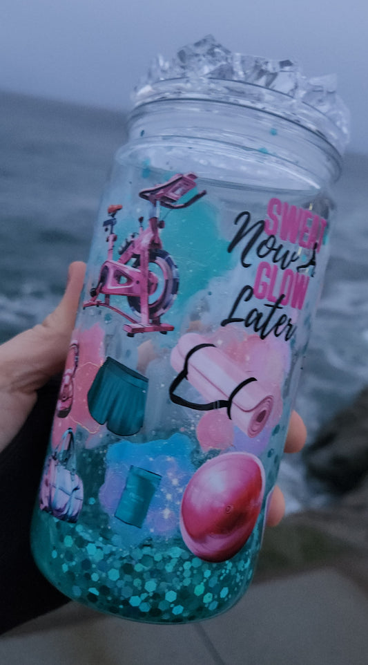 16oz Acrylic Gym Diva Teal and Pink Lava Flow Tumbler - Ready to Ship