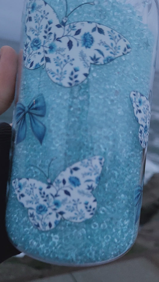 16oz Acrylic Butterfly Diva with Bows Tumbler with Crystal Snowglobe Filling - Ready to Ship